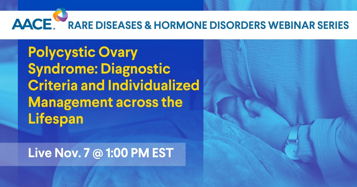 AACE Rare Diseases and Hormone Disorders Webinar Series is pleased to present a women’s health webinar on polycystic ovary syndrome. This webinar aims to raise awareness and equip clinicians with the knowledge to improve patient care and embrace a more nuanced, personalized understanding of women's endocrine health.