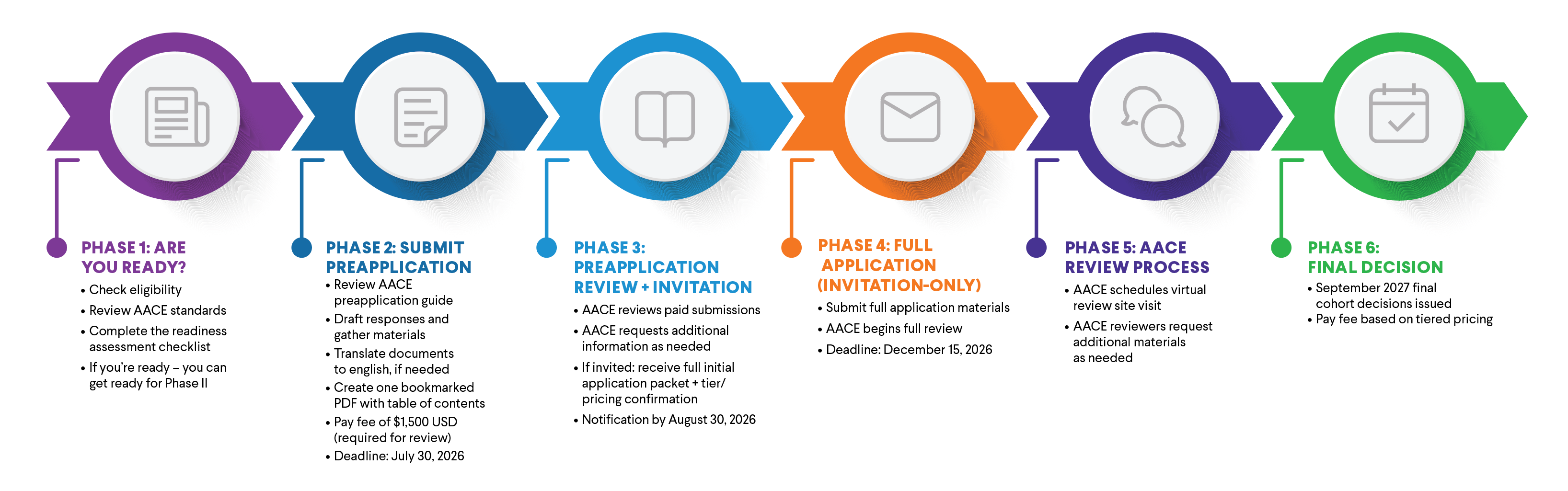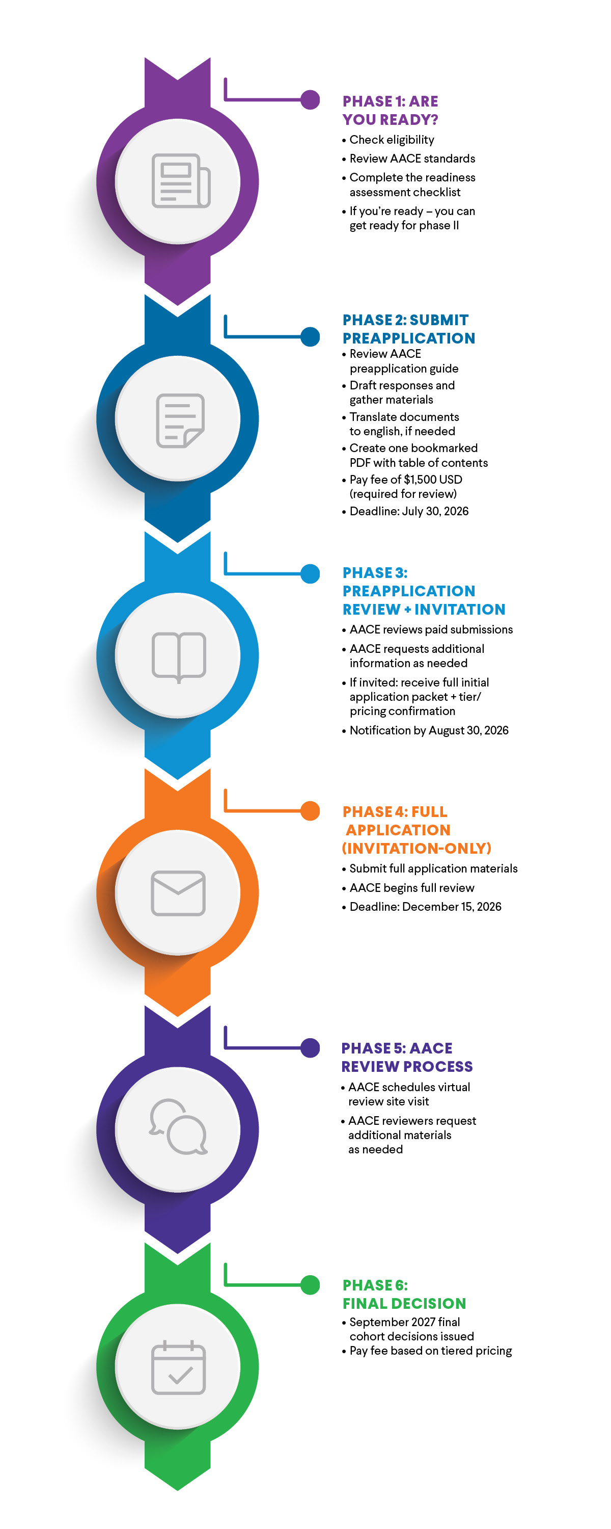 Start Pre-application →Pre-application Deadline: July 30, 2026 (Cohort 2027). Contact AACE for dates and additional details.